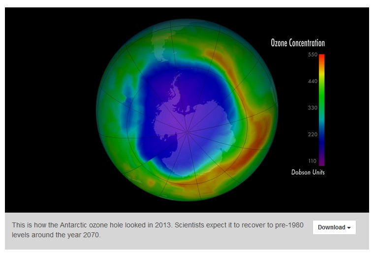 After a short while, people from the scientific community have determined that there was something that we could do about it. Stop using ‘Chlorofluorocarbon’ substances. Old style ‘Freon’. It wasn’t easy – we had to find substitutes and retool factories, but we did it! The ozone layer is in far better shape now!