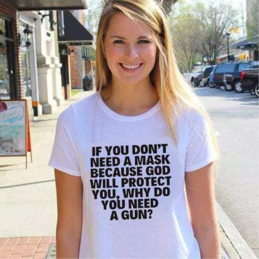 ‘I need a gun to protect myself from those who do not obey all of God’s words but I don’t need a mask to protect me from any of God’s creations. Even from a virus’.