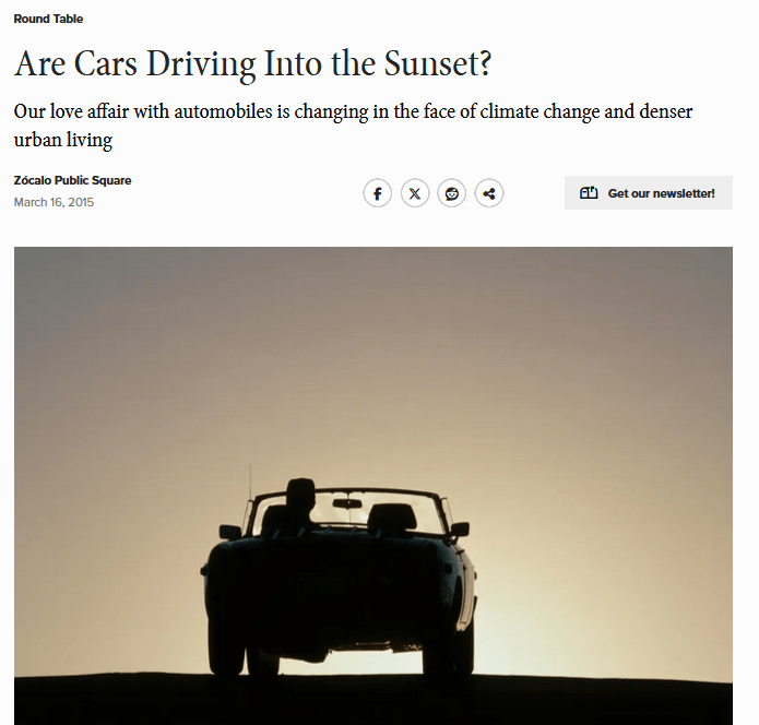 The way things are going now, global warming and self-driving cars, we must find fresh ways to let our autonomy roam free.