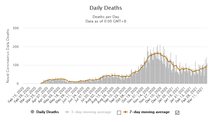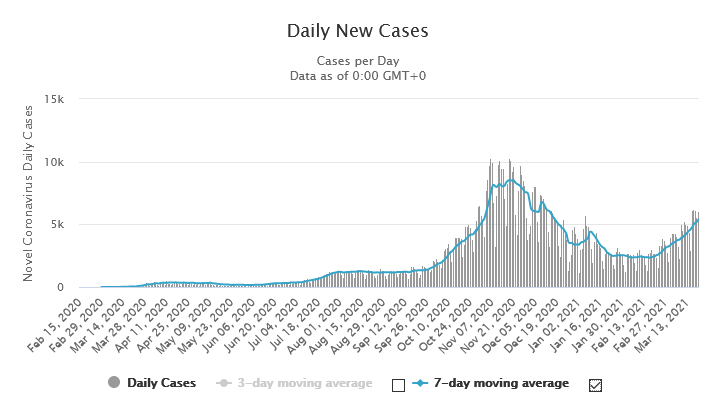 Please note that during the previous peak it had been reached a 7 day moving average of some 8 000 daily new cases. And a 7 day moving average of some 165 daily deaths. Right now we are at a 7 day moving average of 5500 new daily cases and an average of 100 daily deaths 165/8000*100=2.06% 100/5500*100=1.82% Better, but still! And we shouldn’t forget that the hospitals are not yet running overdrive….