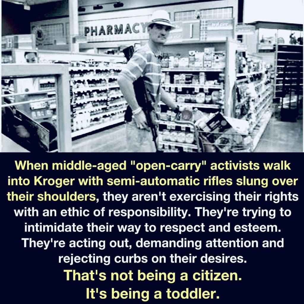 OK, open carrying a gun in a public setting is… an exaggeration. For me, at least. But this is besides the point.