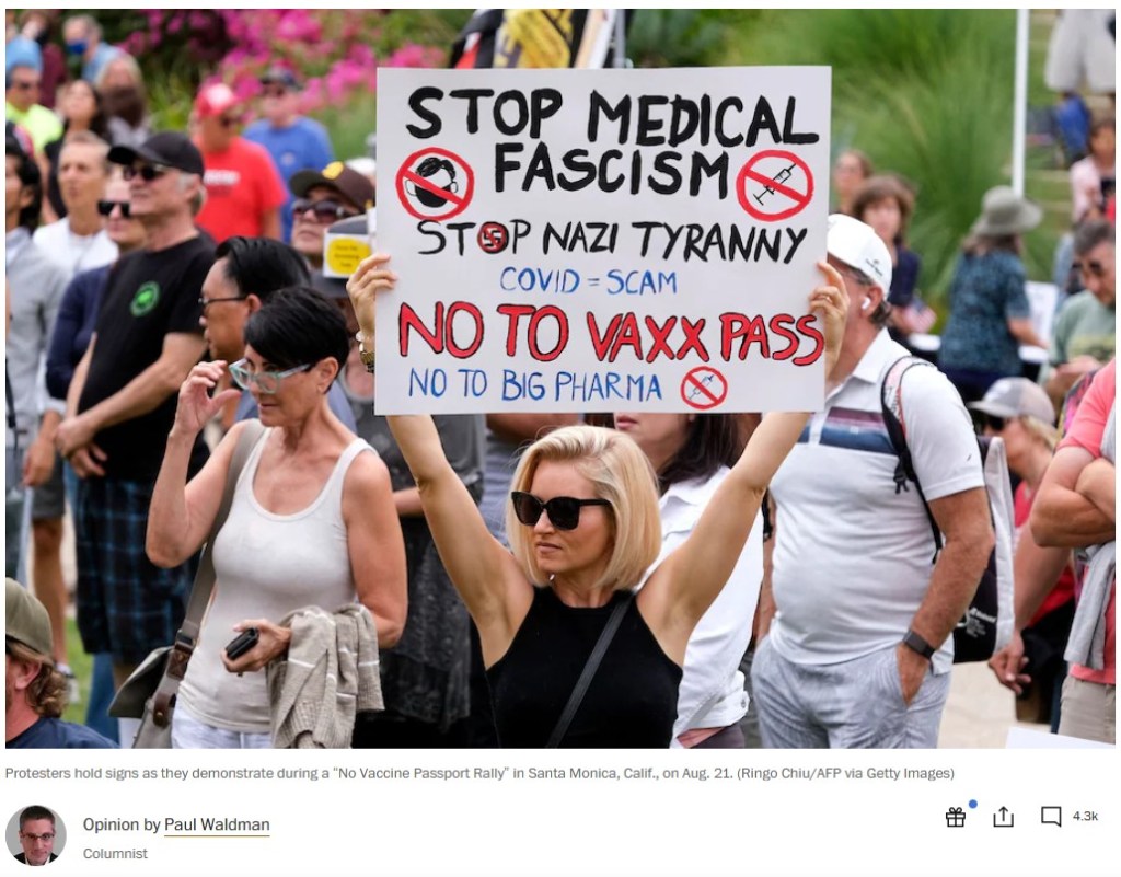 Paul Waldman here is convinced that it’s “Time to say it: We’re done with the vaccine refusers“