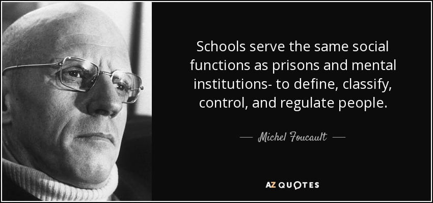 A society where schools and prisons are hard to tell apart – or perceived as such by those who have to spend time in any of them – is sooner rather than later going to reconsider it’s ‘knowledge’ regarding ‘power’. Or else…